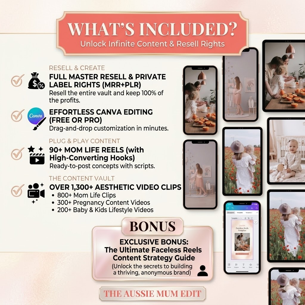 - ✔️ 800+ Aesthetic Mom Life Clips (perfect for engagement)